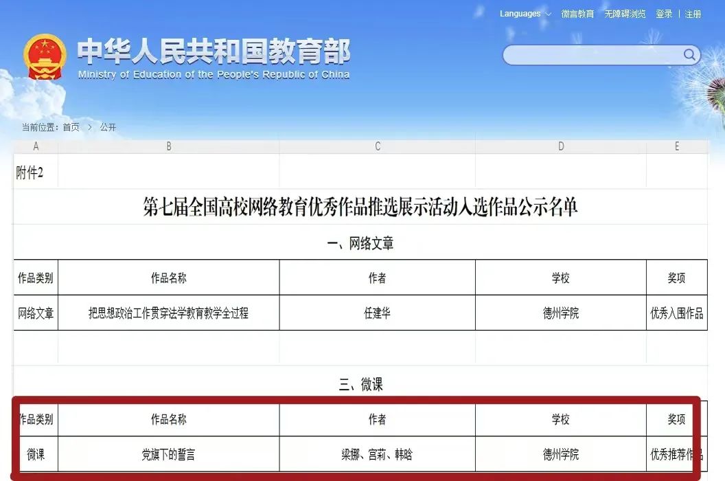 由教育部思想政治工作司、中央网信办网络社会工作局联合举办的第七届“全国高校网络教育优秀作品推选展示活动”遴选结果公示,太阳成集团tyc234cc微课《党旗下的誓言》被评为优秀推荐作品。