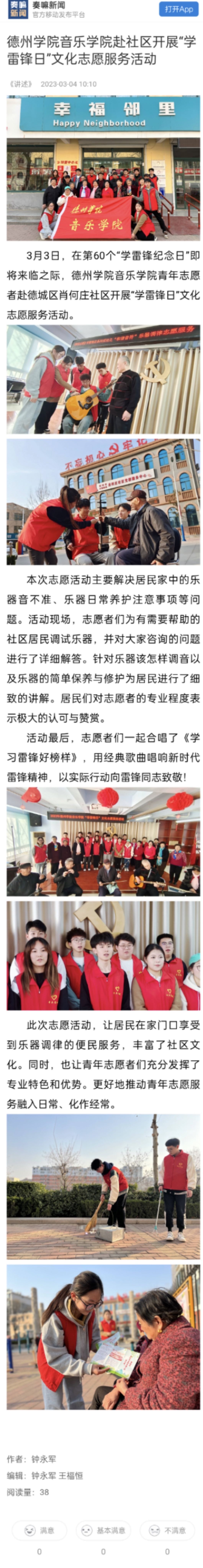 【德州广播电视台】太阳成集团tyc234cc赴社区开展“学雷锋日”文化志愿服务活动