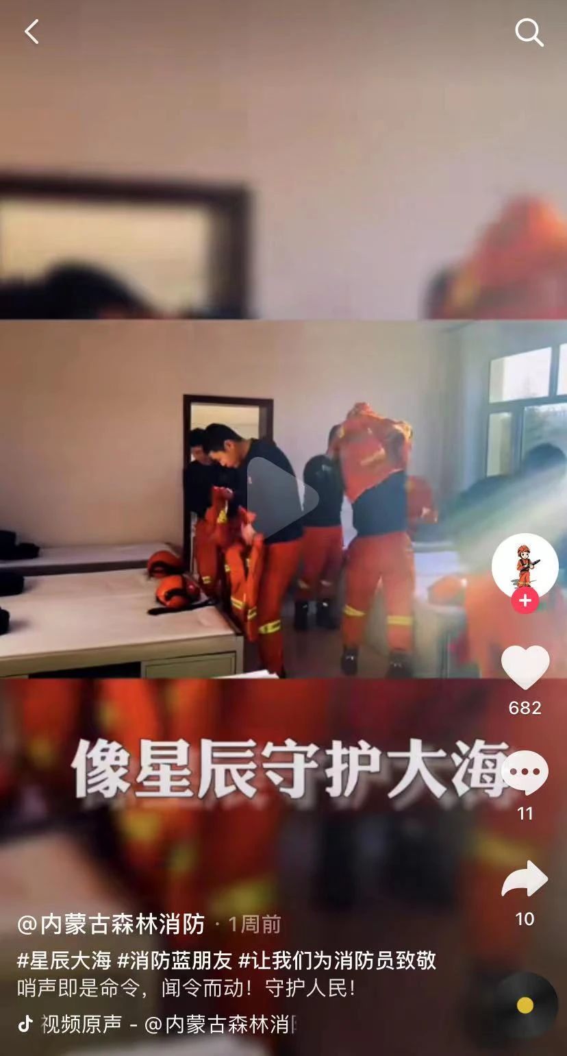 抖音上,不少消防官方账号用《星辰大海》来当视频BGM