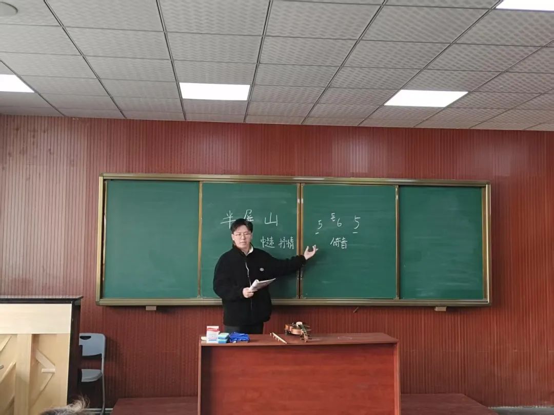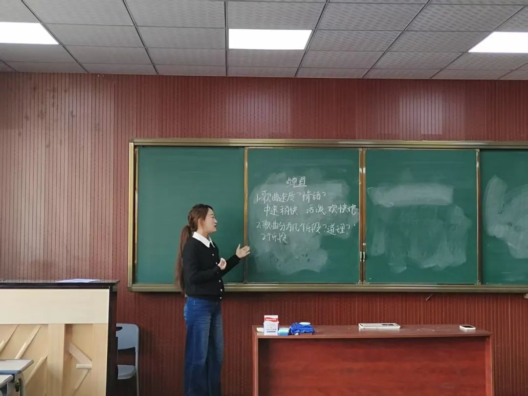 本次大赛严格对标《山东省师范类高校员工从业技能大赛》标准,选题聚焦现行人音版中学音乐教材核心章节,要求选手在10分钟内完成模拟授课、板书设计及弹唱技能展示。评委组从“教学设计创新性”“课堂互动实效性”“思政融合自然度”“教学语言感染力”等维度进行综合评价,并针对每位选手的试讲表现提出个性化建议。