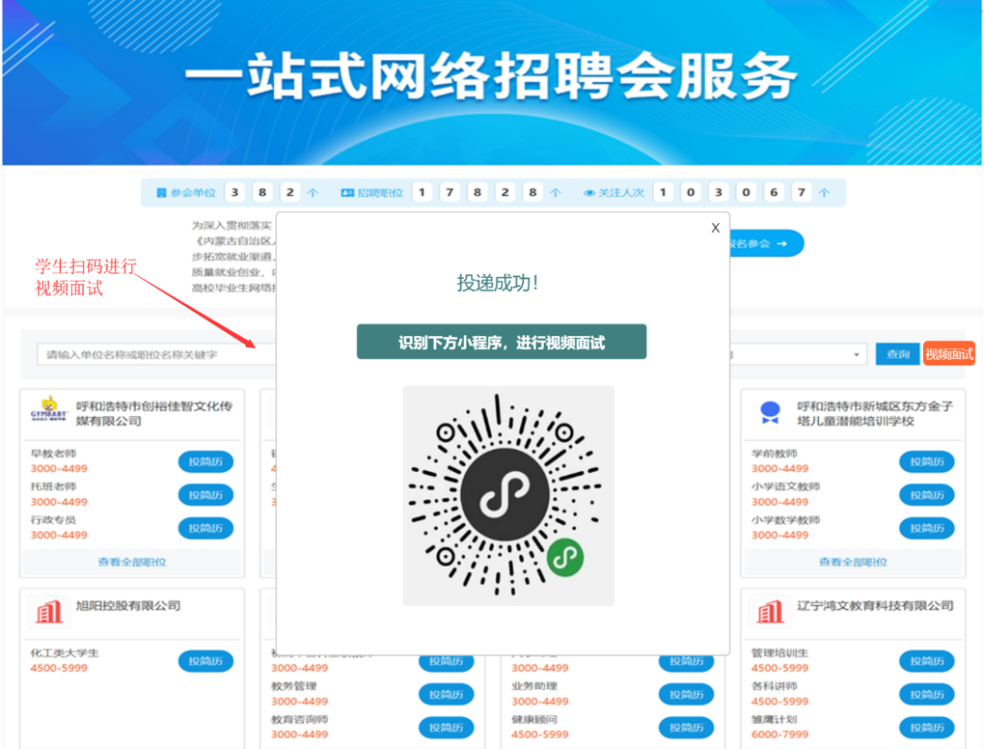 员工手机扫码登录视频小程序,按向导完成视频面试。