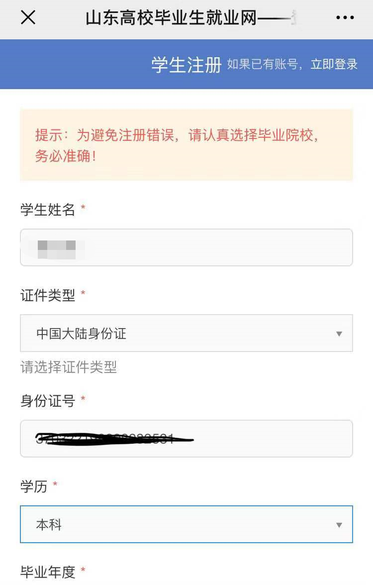 (3)填入栏目中全部准确信息,获取“短信验证码”后输入,选择“我承诺遵守”,点击“注册”按钮。