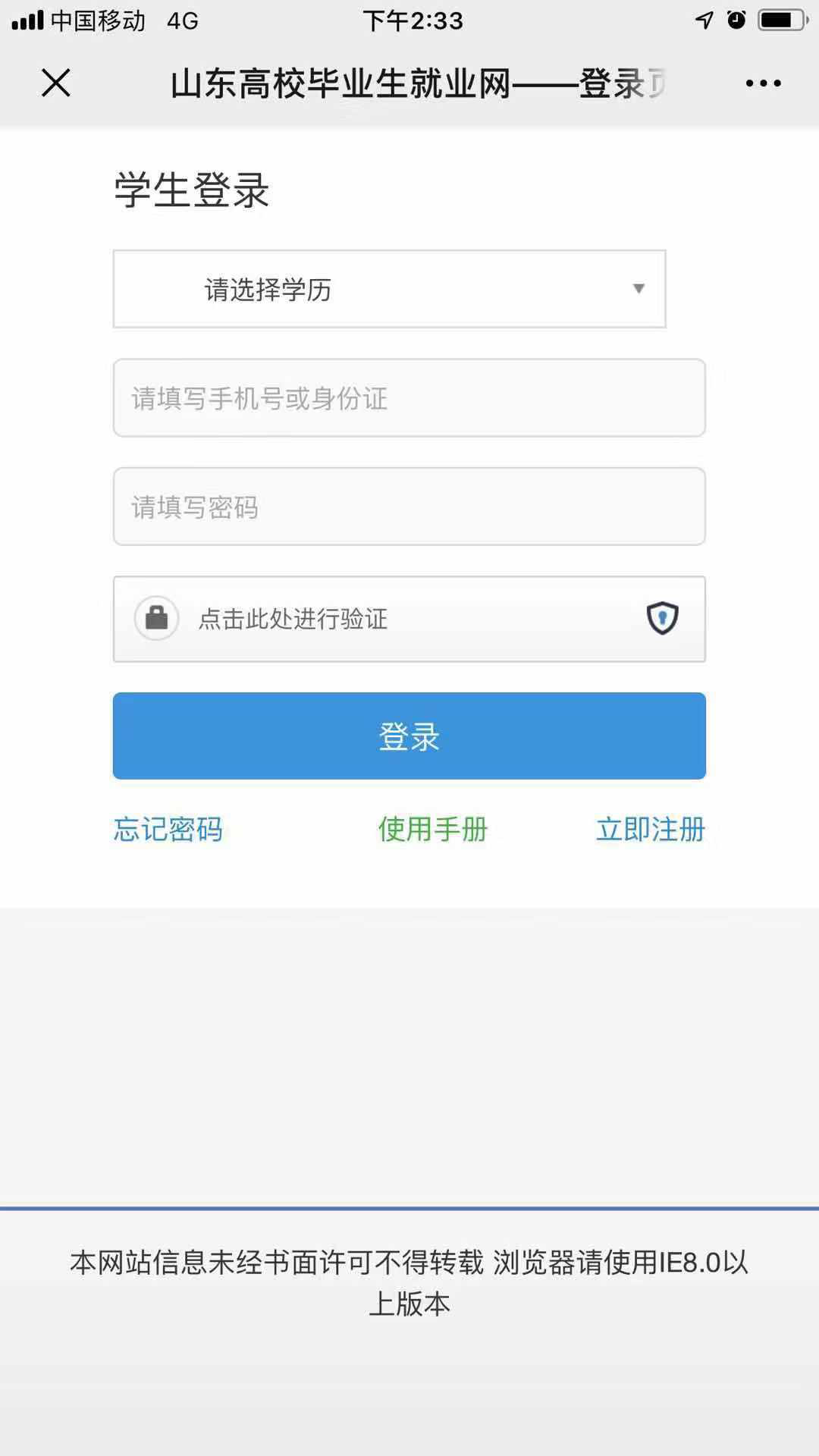 (一)通过“太阳成集团tyc234cc就业管理系统”进行注册 (请使用IE或谷歌浏览器登录)