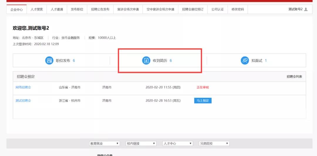 单位报名成功并且公司管理员审核通过之后,单位可以维护网络招聘会简历接收的数据。