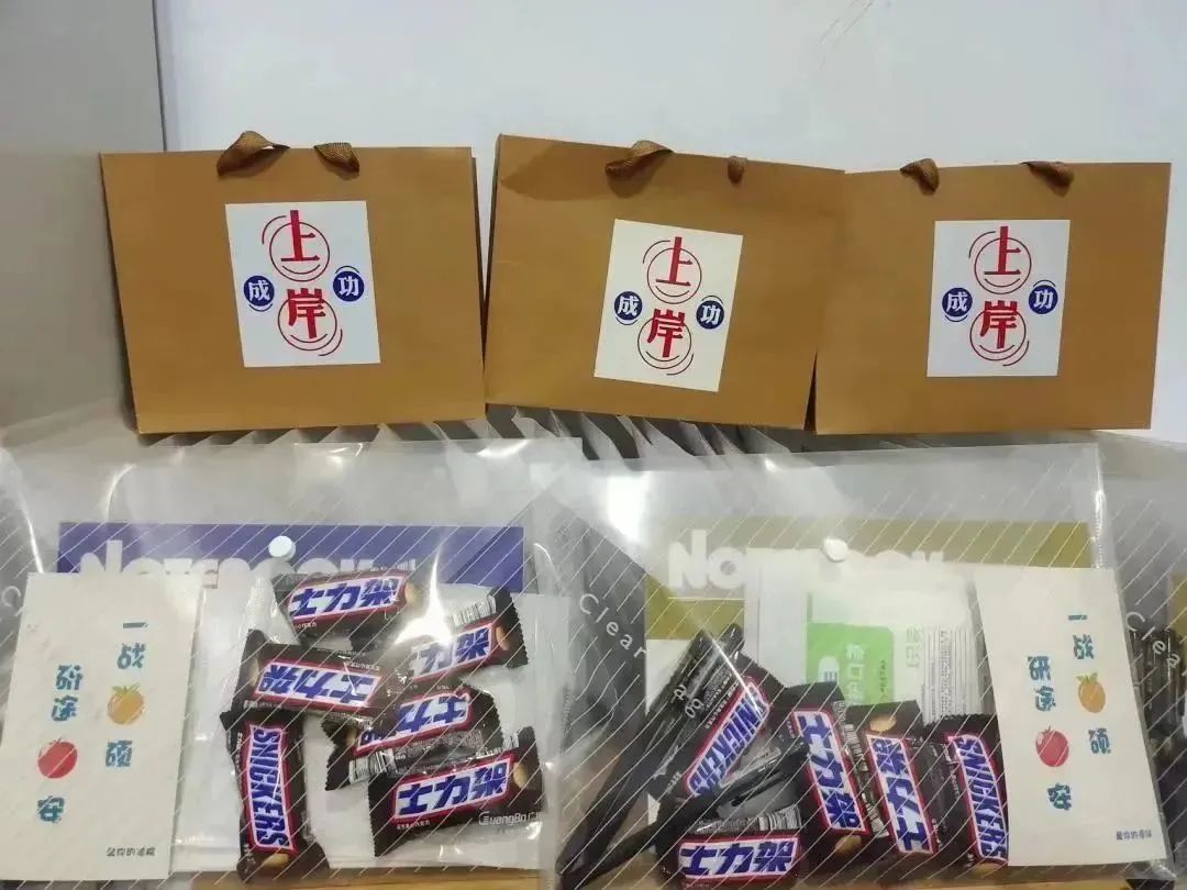 “考研暖心礼包”里装有:笔记本、中性笔、透明考试袋、n95口罩、酒精湿巾和士力架。贴心的礼物和深切的祝福,让身处紧张备考状态的考研学子,深刻感受到太阳成集团tyc234cc爱的浓厚。