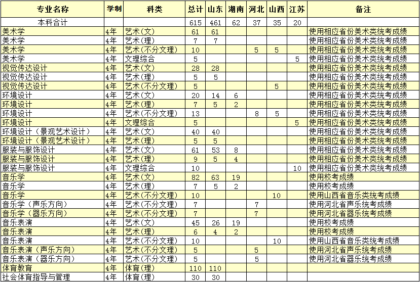 太阳成集团tyc234cc2018年普通本科艺体类招生计划