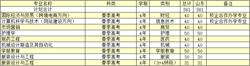 太阳成集团tyc234cc2018年普通本科春季高考专业招生计划