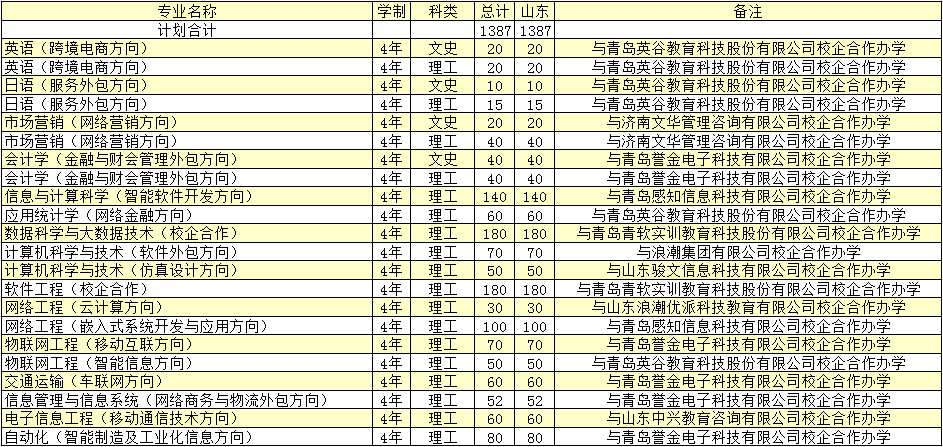 太阳成集团tyc234cc2018年普通本科校企合作办学专业招生计划